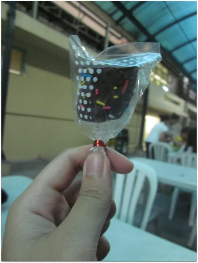 Anyhow, while we were having a chit-chat, 2 girls talked to us. They are from HRM Department, I guess so, and they are endorsing their products to us (chocolates!!!) and according to them, when we buy, the amount that we'll give will go to a charity, a fund or something. "You want?", he said. ""Yes, I'll buy one", I replied. "No! My treat!" Yay! Thank you!!! Then he asked the 2 girls, "Are there any strawberry products?" Unfortunately, none. Hahaha! This guy loves strawberry.