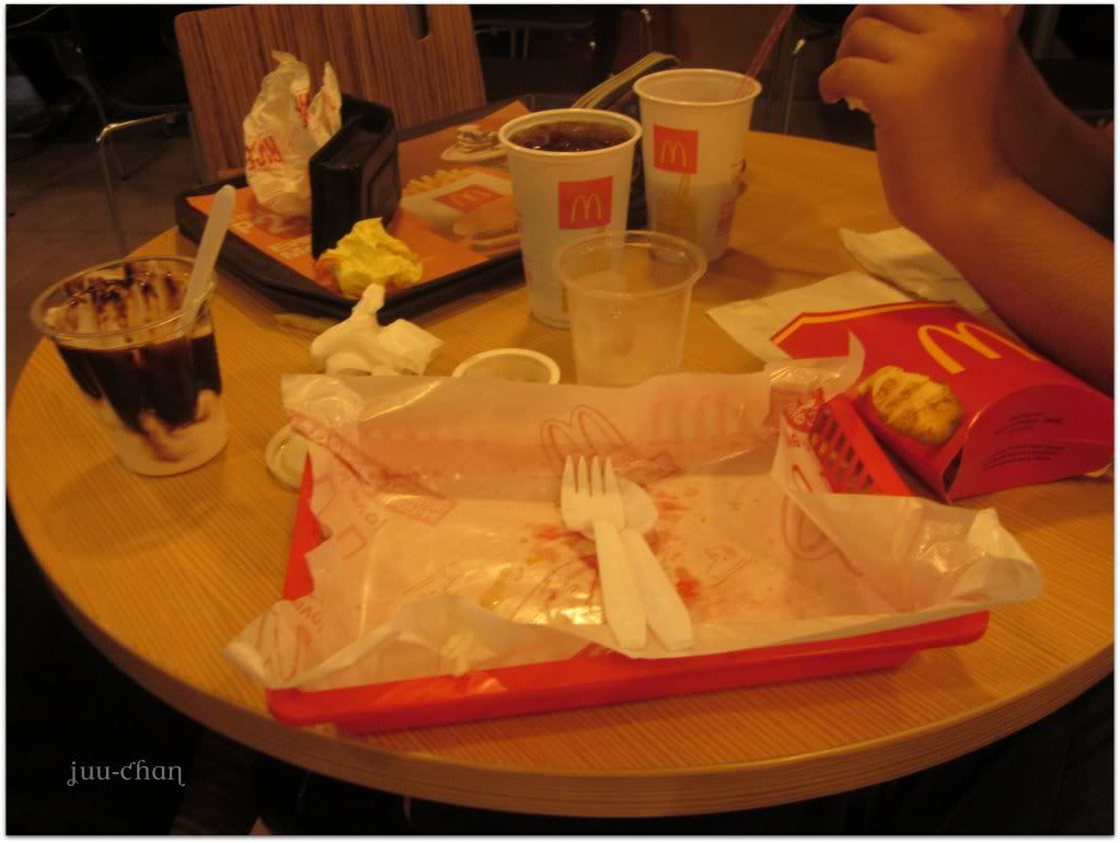 This was yesterday. I am not alone here!! Yippie~ Thank you Jun!!! Well, I just pity him because he didn't ate lunch that time. So before going home, Jun and I ate at Mcdonald's at