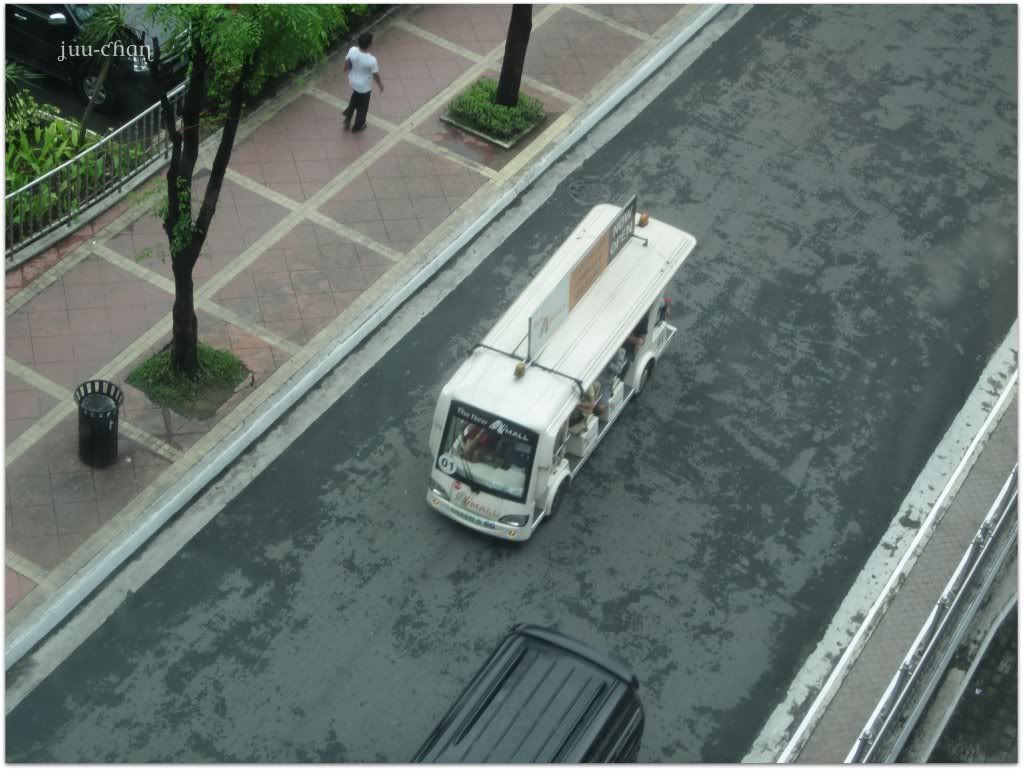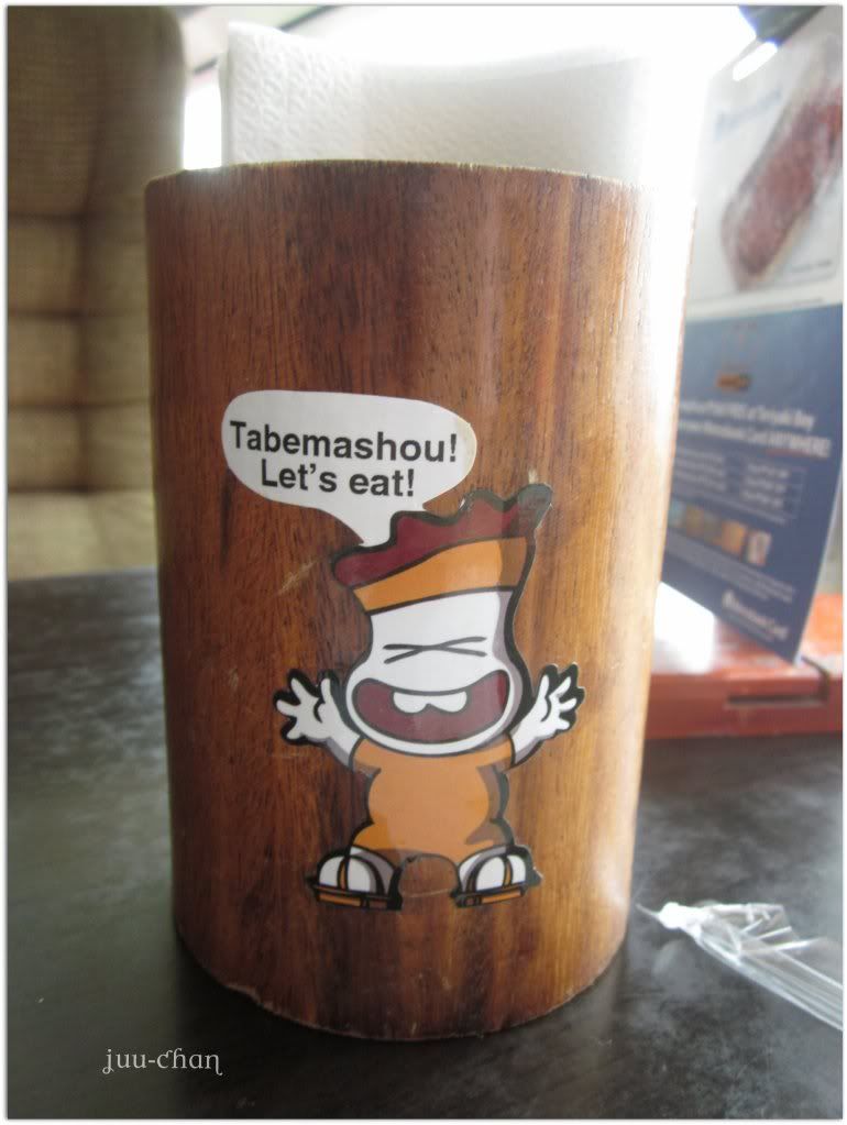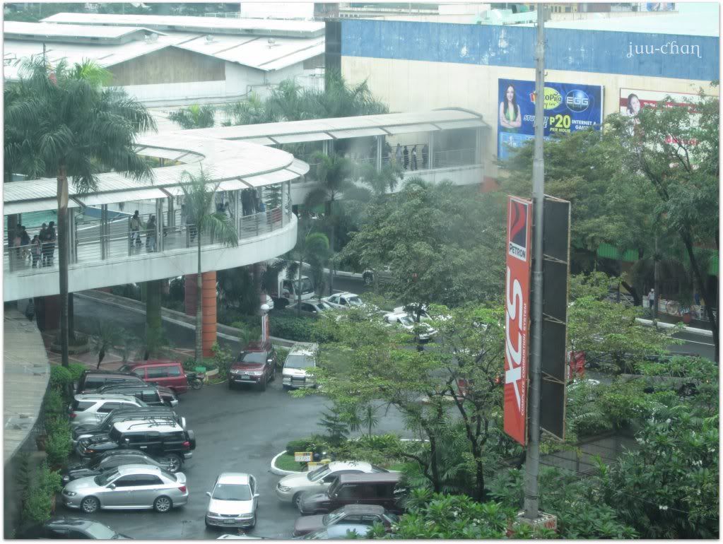 When I entered this Japanese restaurant, the Japanese version of "Gee" by Shojou Jidai is on the background music. I giggled because I remembered the OhmiyaXHarunaAi Gee Dance. Hahaha..(you'll understand me if you are a fan of Arashi) Anyhow, all the music in the restaurant, it's actually like a radio, are all Japanese music but..WHY THERE IS NO ARASHI MUSIC?! I was waiting just for 1 Arashi song, but there's none. I left the restaurant kinda sad, but my stomach is happy! ;) My seat is kind of a sofa and it is just beside a glass, which you can see the outside of the mall. I can see the MRT(one of the trains here in the Phils.), the people, the cars, the buildings, etc. I took the pictures while waiting for my food. Here are some pictures:
